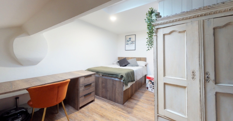 Your bedroom is your own private space to rest and recharge, complete with a comfortable double bed, chic wardrobe and chest of drawers, plus a dedicated study desk and chair for when it's time to focus.